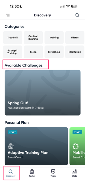 To find challenges, tap the Discovery option at the bottom of the screen.