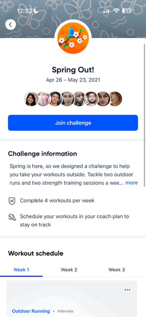 Available Challenges are limited-time programs designed to give you an extra boost of motivation—often inspired by the season or timely goals (like a "New Year Reset" or "Summer Refresh"). Each one guides you through a series of workouts or activities, making it easier to stay consistent and feel good about your progress.